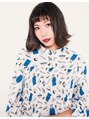 トレンドのブラントカットで切りっぱなしボブに。前髪は外ハネと合わせてオン眉でフレンチテイストのオシャレ感をプラス。