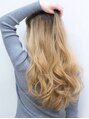 一度ブリーチをして、根元をダークルーツカラー。毛先はミルクティーベージュをオンカラーしました。外国人風カラーをしたい方にオススメです。また、根元が伸びてきになる方にもオススメです。