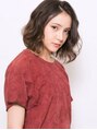 かきあげバング×大きめウェーブでグラマラスなミディスタイルに。無造作感のあるほつれウェーブが外国人風のこなれ感を演出。