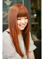 ナチュラルストレート、ショートバングで可愛さプラス(*^_^*)カラーはピンクカッパーで♪