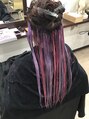 インナーケアブリーチのクーポンにトリートメントカラー(塩基性)をプラス(2,160円)して可愛さを☆パープルとレッドの2色で立体的に!