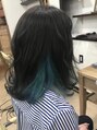 インナーケアブリーチのクーポンに塩基性染料カラーのクーポンをプラス(+2,160円)し、淡いブルーと濃いブルーのを2色使って立体感を出しています☆
