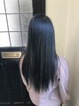 室内では黒っぽい感じに見え、自然光のあたる場所では青黒い感じに見えます☆一度のケアブリーチで大丈夫なカラーです!青にしたい場合は2回のケアブリーチが必要!シルバーシャンプーがおすすめ☆