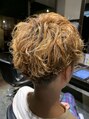 サイドとバックを3mmで刈り上げ、マッシュベースにカット☆ブリーチ毛なので部分的に薬の強さを調節してスパイラルパーマを当てています!カール感の強過ぎない動きが出るのでセットが簡単になります♪
