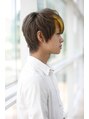 前髪重めのショートボブのようなスタイルをモデルさんの甘い雰囲気に合わせてカラーリングと軽さを出しました。前髪のイエローのハイライトはモデルさんの希望で入れさせていただきました。アクセントがきいてモード感をアップしてくれます。