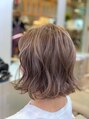 - ドライカットで不揃いさをあえて作り外ハネの無造作な毛先に。アッシュ系カラーで透明感のあるカラーを