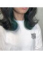 ベース透明感グレー。ベースはブリーチなし。インナーカラー、ブリーチ1回、カラーバターのGreenをON☆透明感、髪の動き、柔らかさをを演出。スタイリングは波巻きとツイスト巻きでプロダクトを付けるだけ☆