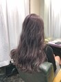 ベースは柔らかい質感のパープル(ラベンダー)グレージュ。2 Bleach必須。透明感、髪の動き、柔らかさをを演出。スタイリングは波巻きとツイスト巻きでプロダクトを付けるだけ☆