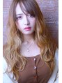 ロングのバレイヤージュスタイルで通常のグラデーションよりも高い位置に作ってあるので巻いた時でもかなり華やかになります。前髪はシースルーなのでバレイヤージュで華やかさを出してシースルーで大人っぽさを表現しています。