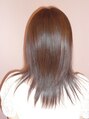 世代問わず、誰からも好感を持たれるストレートロングです。髪全体が重くなりすぎないように毛量調節をしてあります。ツヤを失わないカラーの色で仕上げてあります。
