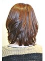 レッド系で染めた色味は顏映りを明るく見せてくれます。ぺたっとなりやすい髪に丸みをつけて解消。