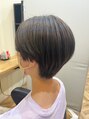 前髮や顔まわりから繋がるマッシュショートスタイルです。内巻きにワンカール後ろに流すだけでかわいいです◎お色は赤みを抑えたグレーベージュです!