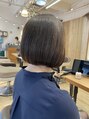切りっぱなし・ワンレングスボブ骨格や髪質に合わせ、小顔に首が長く見える様な、ボブスタイル。前髪をセンターパートで、おでこが見えることで肌が縦長に見え、顔がシャープに見えます。似合わせ・ボブになります。くせっ毛でもまとまりやすいカットします。