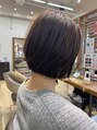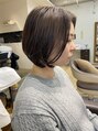 切りっぱなし・レイヤーボブ骨格や髪質に合わせ、小顔に首が長く見える様な、ボブスタイル。前髪をセンターパートで、おでこが見えることで肌が縦長に見え、顔がシャープに見えます。似合わせ・ボブになります。