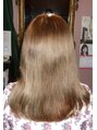 ビフォー写真は、プレミアムトリートメントカラーの施術をする前の状態です。毛質は細くてからみ易く、広がりやすいです。広がるのは、髪の毛が「緩んでいる」状態だからです。髪を引き締めてあげるとカラーの退色も遅くすることができます。