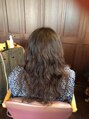 毛が細く、パーマをかけても取れやすいとのことで、気持ち強めに。毛先10cmのダメージを補修し施術。アフターケアで、よりツルンとした質感にしていきましょう。