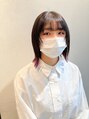 切りっぱなしのボブの毛先にパープルを入れて遊び心♪色が抜け切っても根元を気にしたりしなくていいので長く楽しめます^^顔周りにはレイヤーを入れて小顔効果です^^