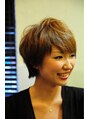 ボーイッシュにならないように丸い感じにカットし、トップにナチュラルパーマをかけ動きを出し、顔周り襟足にローライトを入れました。顔周りは動きがでるように、襟足は締まって見えるようにしました。