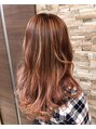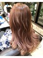 ハイライトグラデーションカラー!根元から中間部分にかけて筋になってる所がハイライトで、毛先はグラデーションで全体にブリーチしています!ハイライトを入れる事で、ベースの暗いピンクと筋に入るピンクに陰影がつき立体感が出ます♪【キャラ池袋】