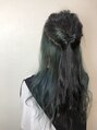 表面は暗めのグレーを入れインナーにはエキストラブルーをいれて内側外側でメリハリのあるデザインにしました。エキストラシリーズは発色の良いカラー剤なので色が落ちたらまた別の色にチェンジして楽しめますよ♪【キャラ池袋/chara池袋/池袋東口/玉城光】