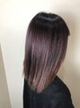 ピンクヴアィオレット逆グラデーション。ピンクとヴアィオレットを1対1で配合し徐々に全体を見た時にオーロラ風に見えるようにデザインしました!全体ブリーチは一色だけでなく部分で色を変えても可愛いですよ♪【キャラ池袋/chara池袋/池袋東口/玉城光】