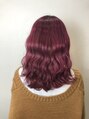 カラー剤で造るビビッドピンク。ハイライトを全体に細かく入れてるので全体ブリーチしなくてもしっかり色味が入ってくれます。今はマニキュアやカラーバターを使用せずとも個性的なカラーが作りやすくなってるので是非ご相談下さい♪【キャラ池袋/玉城光】