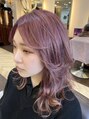 AVEDAカラーで創るブリーチカラー。前頭ブリーチして、AVEDAのヴァイオレットでオンカラーしてます。AVEDAカラーは93%自然由来で出来ているので、ブリーチ後のオンカラーも艶々になります♪カットは動きが出るレイヤーカットです。【キャラ池袋/池袋chara】