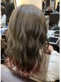 ブリーチ1回でするミルクティーベージュ!ポイントで裾部分にバイオレットを入れています!ミルクティーベージュが綺麗に見える明るさは9から12トーン位の間の色味が透明感があってオススメ!髪質やカラーの履歴によってブリーチ回数が異なるのでご相談ください