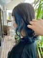 インナーカラーで垢抜けませんか?ダメージレスなケアブリーチを使用し、ブルーに仕上げました♪インナーカラーは全頭ブリーチしないのでカラー初心者さんにもオススメです!一気にお洒落になれるのでご相談ください!【インナーカラー/ブルー】