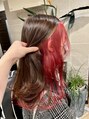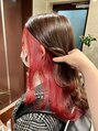 インナーカラーで垢抜けませんか?ダメージレスなケアブリーチを使用し、レッドカラーに仕上げました♪インナーカラーは全頭ブリーチしないのでカラー初心者さんにもオススメです!一気にお洒落になれるのでご相談ください!【インナーカラー/レッド】