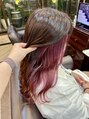 インナーカラーで垢抜けませんか?ダメージレスなケアブリーチを使用し、1番人気のピンクに仕上げました♪インナーカラーは全頭ブリーチしないのでカラー初心者さんにもオススメです!一気にお洒落になれるのでご相談ください!【インナーカラー/ピンク】
