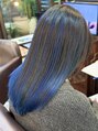 【気に入ったスタイルは「ブックマークする」ボタンを押してご利用ください】表面は地毛を残して、内側をブリーチ&カラーでブルーのインナーカラー♪アンブレラカラーのデザインが大人気◎レイヤーカットとの相性も抜群!色を変えて楽しめます♪