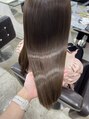 薬剤ダメージでハリコシの弱くなった髪もサミートリートメントで補強してツヤツヤです。バイオレットベースで作るグレージュはとっても柔らかいくすみカラーになります。