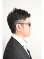サイドはグラデーションに刈上げたツーブロックスタイル。ネープ~バックは厚めのグラデーションでつなぎ、トップはレイヤーを施し、トップに立ち上がりと動きをつけるために軽めのパーマをかけました。