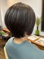 頭の形がきゅっとコンパクトに見えるショートスタイルにカットさせていただきました。オーガニックカラーのオリーブ系で赤みを抑えるように遅めしてお染めしております。