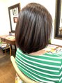 肩上でまとまる長さに、表面はふんわりと動きが出るようにカットをさせていただきました。オーガニックカラーのベージュ系でお染めしております。