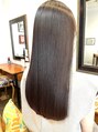 まとまりやすいように重さを残してカットをさせていただきました。オーガニックカラーのグレージュ系で透明感のあるお色にお染めしております。