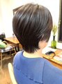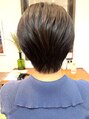 襟足はタイトに、トップはふんわりと軽やかなショートスタイルにカットをさせていただきました。オーガニックカラーのオリーブベージュでお染めしております。