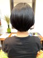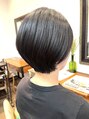 お首元はすっきりと、頭の形が綺麗に見えるショートスタイルです。オーガニックカラーのグレージュ系で赤みを抑えるようにお染めしております。
