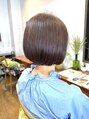 乾かすだけでまとまるボブスタイルに、オーガニックカラーのベージュ系でお染めいたしました。炭酸泉でツヤのある仕上がりになっております。