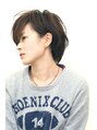 カジュアルショート 耳かけ 黒髪 ひし形フォルム
