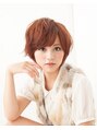 スッキリなショートヘア。顔周りの長さは残して、女性らく品のあるショートスタイルに。カラーは、秋冬おすすめの暖色系 ノーブルチェリー カラー。ツヤ感のでるオススメカラーです。どんな顔型 髪質にも対応可能ですよ。