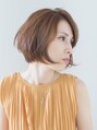 前下がりボブに少しだけ 段差を加え自然におさまるようにカット。カラーは ナチュラルなベージュブラウンで 柔らかさを演出しています。