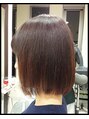 広瀬すず風にカットして、幼くなり過ぎないように、かなり毛量調整をし、軽さを意識した大人ボブスタイルにしています。クセがあるのでノンシリコン縮毛矯正でストレートにしています。カラーで優しさが出るように(ブラウン)で明度も彩度も調整しています。