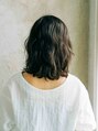 無造作なミディアムレングスのウェーブスタイルです。バングなしの髪型で暗めのトーンのスタイルなのでクールなイメージのスタイルになります。全体をミックスにコテで巻くかスパイラルパーマをかけると楽にセットすることが可能です。