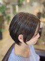 大人可愛い、エアリーなひし形ショートstyle…★襟足の長さに余裕を持たせた絶妙な大人オシャレ感…★耳にかけたり、アレンジで表情が変化…★colorは、グレイカラーピンク×ブラウン系7-8レベル♪