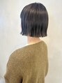 ぱつっと切りっぱなし風のミニボブに。オイルつけてスタイリング。ハイライト歴のあるベースにグレージュカラーにブルーをプラス。