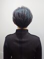 【気に入ったスタイルはブックマークへ登録してご提示ください】トップをふんわり立ち上げるために短めにカット。全体の襟足を締めたコンパクトショートスタイルです。ハイライトを細かく入れてダークブルーを被せてカッコよく仕上げました。