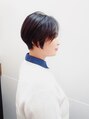 【気に入ったスタイルはブックマークへ登録してご提示ください】前髪の長さが雰囲気を出してるスタイリッシュショート。毛先のシースル感で軽さを、黒髪で重さを感じるスタイルにしました。