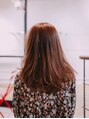 無造作なナチュラルミディ。サイドパートで大人可愛い雰囲気に☆ピンクベージュのカラーで柔らかさとツヤ感を出して外国人風でスポンテニアスに☆トップには軽さと動きがでるようにレイヤーをいれて無造作な雰囲気に。【相模大野】